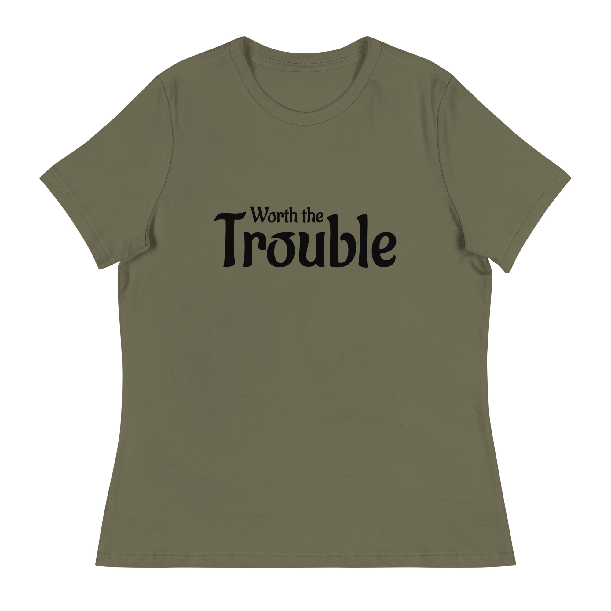 ‘Worth the Trouble’ Women’s Relaxed T-Shirt (black letters)